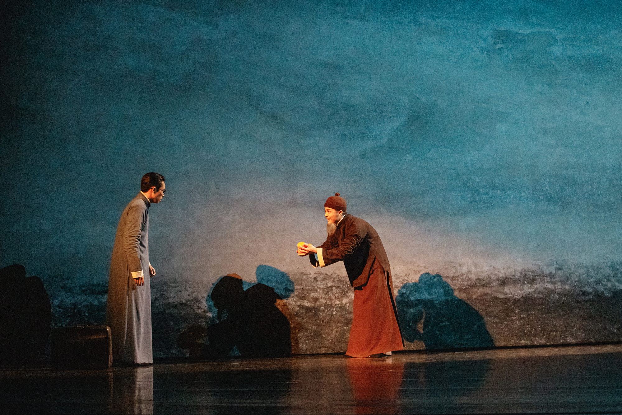 舞劇《朱自清》以朱自清先生彌留之際回顧生平為架構,采取寫意而極具戲劇張力的手法,將朱自清先生的重要生命瞬間(清華教書、聲援摯友聞一多、拒食美援面粉)與代表性作品(《背影》《荷塘月色》《匆匆》)內容有效串聯在一起,大氣動人的舞蹈跟緊扣劇情的音樂,以及極具創造力和想象力的舞美相互交融,完美勾勒出愛國作家、學者朱自清的人生軌跡與豐富面向,再現朱自清先生文人氣質和錚錚傲骨。